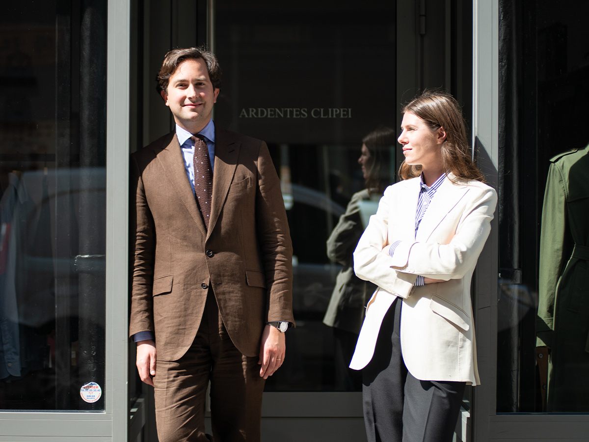 La presenza digitale di Ardentes Clipei è cresciuta in modo naturale, modellata dalla generazione di Romain e Anna. «Siamo cresciuti con i social media», racconta. «Sono l’opposto dell’artigianato manuale, ma sono un ottimo mezzo per mostrare, educare e condividere idee. Il made to measure invita alla creatività e i social aiutano i clienti a collezionare ispirazioni.»