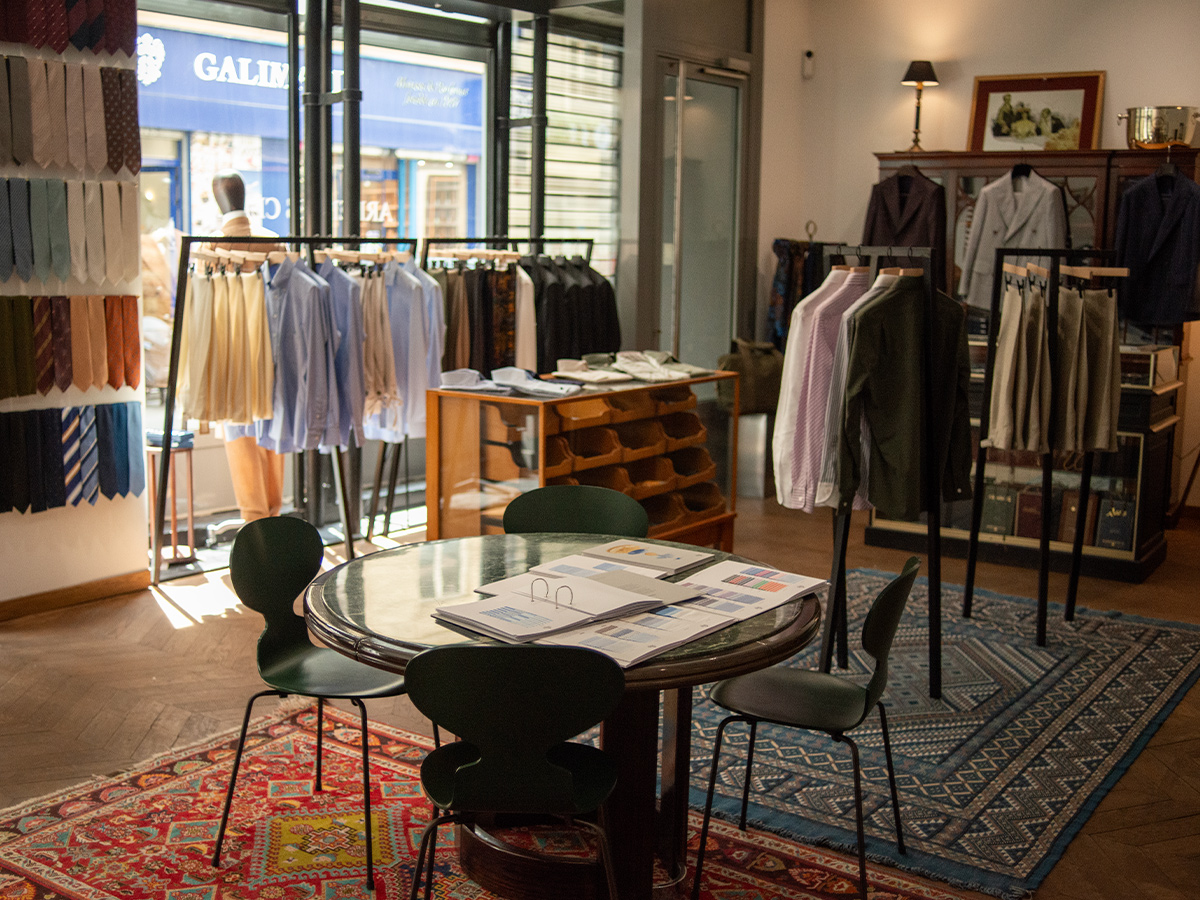 Al 46 di Rue de Provence, nel cuore del IX arrondissement di Parigi, la boutique di Ardentes Clipei colpisce per la sua discreta eleganza. Attraverso le vetrine che affacciano sulla strada si intravedono capi su misura, una luce morbida e un interno intimo, dove i clienti sono accolti con un caffè e del tempo dedicato solo a loro. Più che una sartoria tradizionale, sembra un luogo pensato per un’attenzione senza fretta: un lusso che rappresenta l’essenza stessa della sartoria contemporanea.